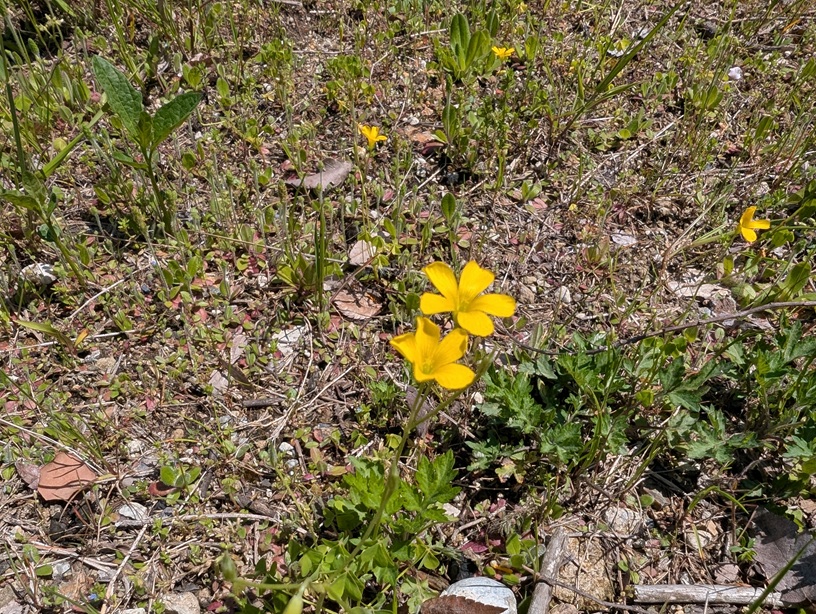 枝垂れ桜まつりは毎年開かれております。花有り、いろいろなフルーツあり、お店もたくさん出ています。選ぶのに大変です。来年でもいらっしてください。 カワセミは用心深くて近くまで行けません。ちょっと近くまで行くとさっと川に沿って飛んでいきます。色彩豊かなきれいなスズメぐらいの大きさです。 近くでこのような野鳥が見られるって幸せですね。 散歩路で見つけました。カタバミ?の花ですね。