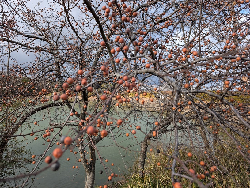 マメナシの木です。古代から生き続けています。無を小さくした可愛い実をしています。梨と似ていますがかじると苦いです。